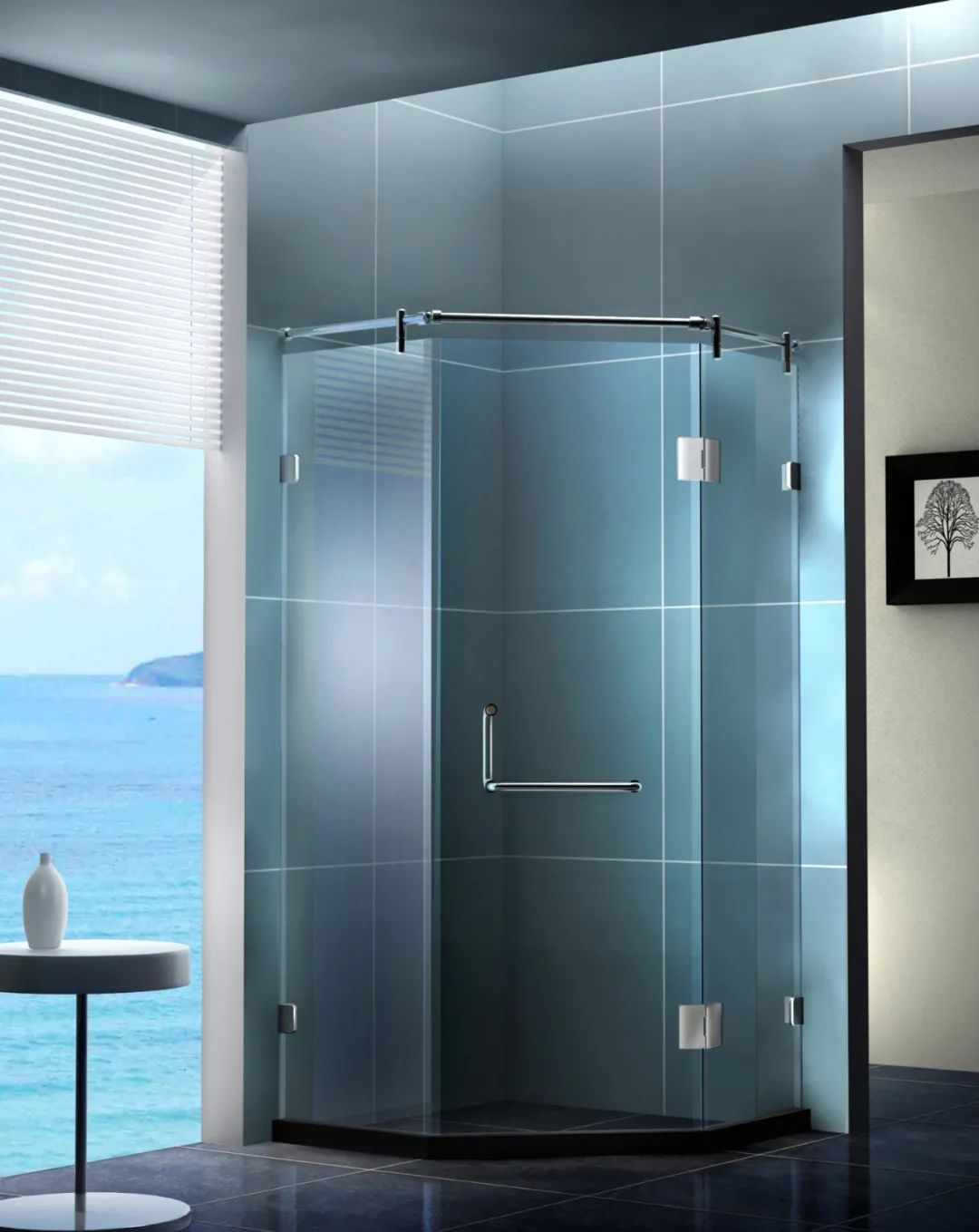 使用8-10mm厚度、激光刻有CCC標(biāo)志(中國強制產(chǎn)品認(rèn)證),貼上防爆膜的鋼化玻璃隔開,并采用優(yōu)秀的淋浴房五金配件,讓淋浴房開啟順暢、隔水性能更好。
