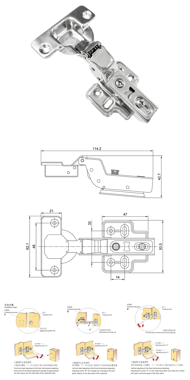 開門角度95°,關(guān)門45°時(shí)開始緩沖