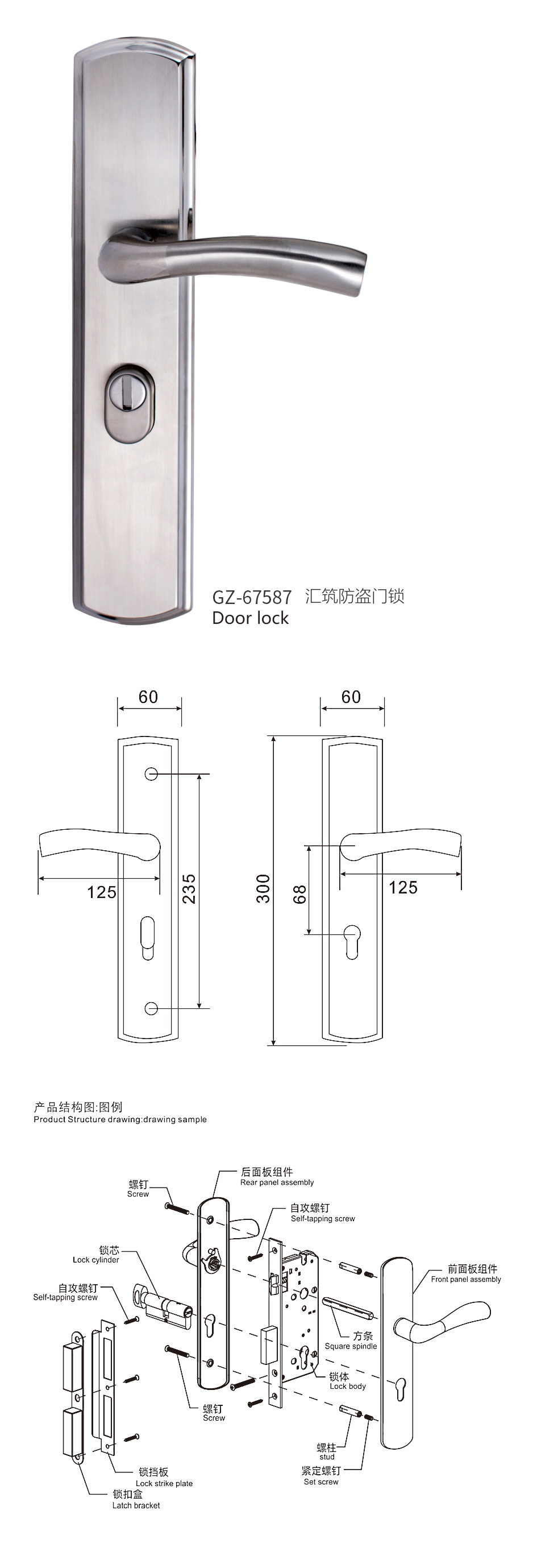 6. 擰緊螺釘,安裝扣板及扣盒,對齊鎖體,應使鎖舌與之配合順暢,擰緊螺釘(如上圖:H)。