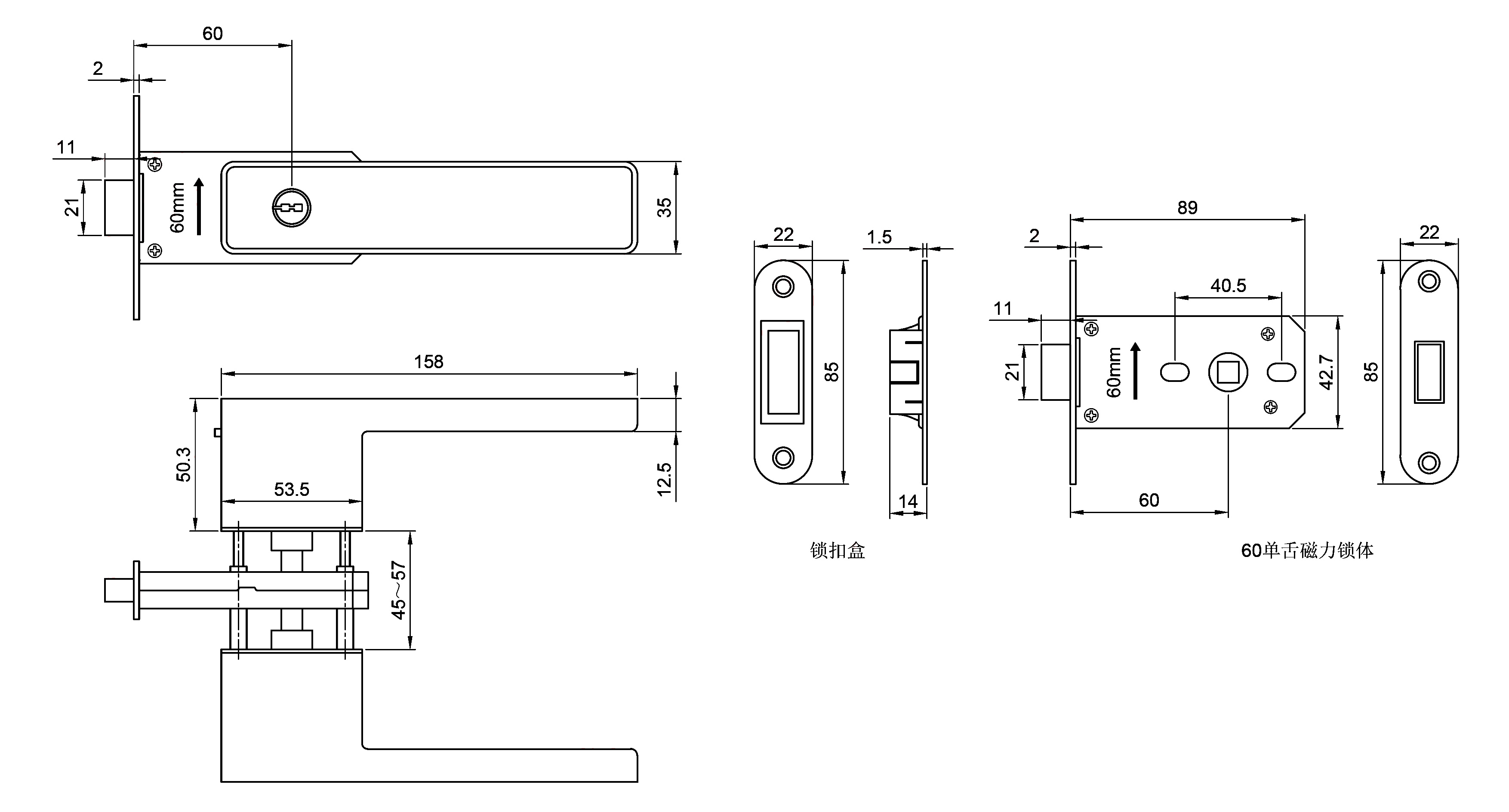 鎖舌內(nèi)藏,門打開時不凸出門板,安全、美觀;