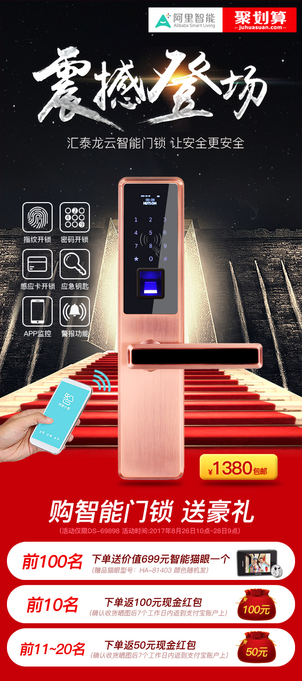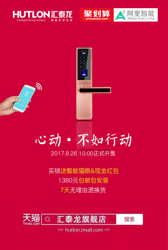 匯泰龍&阿里智能聯合出品云智能鎖僅售1380元,不止包郵還送壕禮