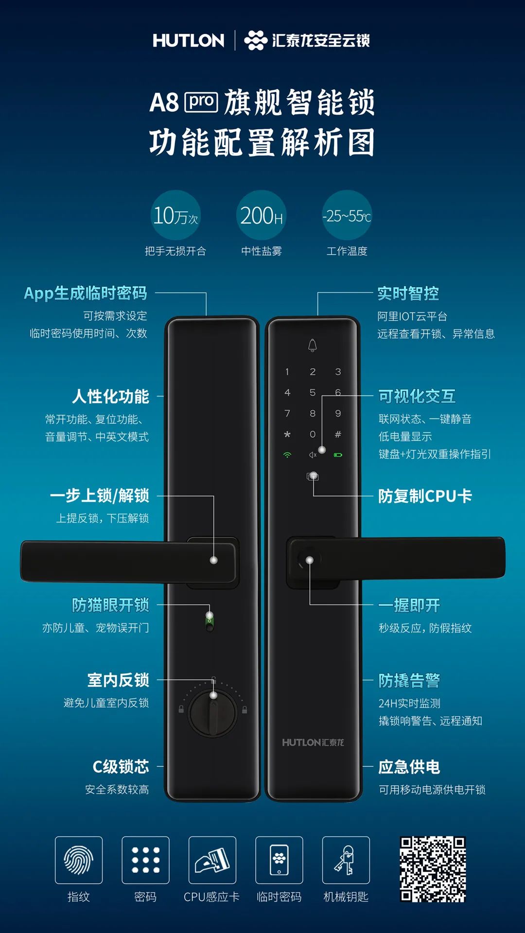 WiFi直連,擁有實時智控、App生成臨時密碼等功能。