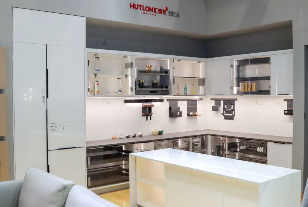 在廚房場景中,客商體驗到智能廚具升降機、碗碟籃、平籃、調(diào)味籃、轉(zhuǎn)角拉籃、高身拉籃等廚房收納五金,發(fā)揮“小空間,大收納”的作用,讓柴米油鹽的生活瑣事變得井然有序。