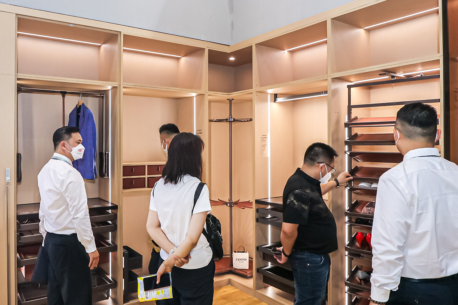 匯泰龍本次展會以全屋五金一站式解決方案為基準,1:1搭建還原客廳、餐廳、廚房、衣帽間等家居場景,將數百款全屋五金產品及智能門鎖產品融入場景中,更為直觀地展現全屋五金的魅力,打造理想家居的樣板,帶來沉浸式觀展體驗,得到業界人士及眾多客商的關注與認可,紛紛商談合作。