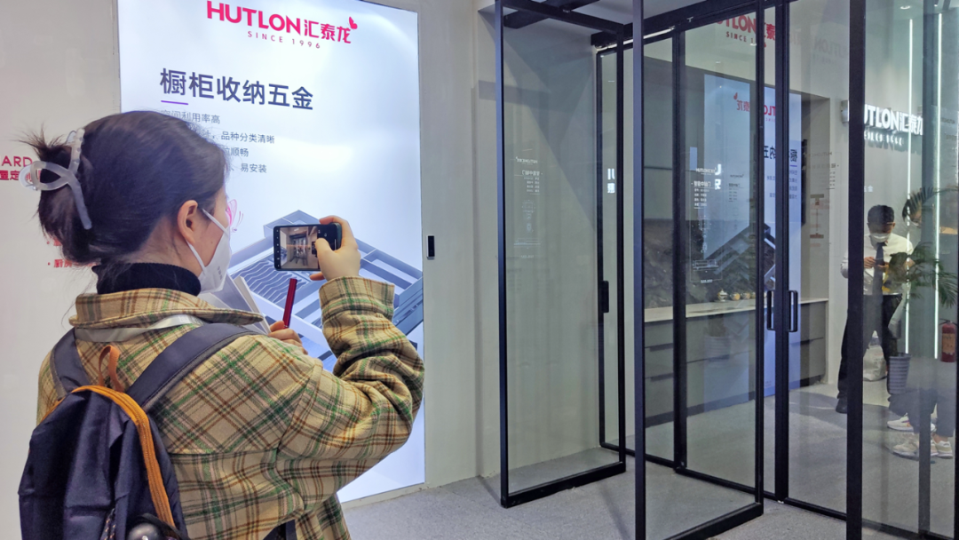匯泰龍利用移門展示區劃分空間,提升家居空間場景的還原度外,展示隔斷移門五金對改變家居空間布局的重要性。匯泰龍帶來磁懸浮移門對開系統,窄邊框同步同向雙緩沖移門吊輪、中軸門等4套移門解決方案,客商在現場玩轉家居空間,體驗用五金改變格局的新奇體驗。