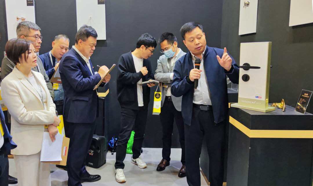 值得一提的是,匯泰龍”悄悄鎖”還亮相主辦方設立的金定獎入圍展示區。27日早,匯泰龍五金研發部總監張學勤為評審團和觀眾介紹時,贏得了大家的關注和點贊。