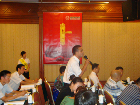 7月7日上午8:00,廣州華夏大酒店三樓會議廳內一片喜慶的景象。紅色的地毯、紅色的匯泰龍主題背景、紅色的文化宣傳畫交相輝映,把整個會議廳的氣氛渲染得熱烈而喜慶。走進會議廳內,三百個擺放整齊的座位,無一虛席,大型的主題背景上赫然印著“匯泰龍門店銷售與管理技巧培訓”的主題大字。匯泰龍全國經銷商大型培訓正在此舉行。