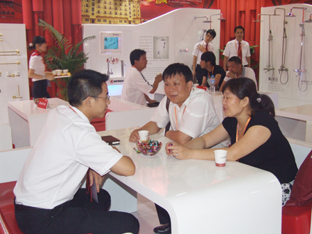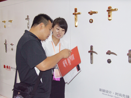 在每一個系列的產品前,公司都配備了一名專業的工作人員。這些匯泰龍工作人員具備五金衛浴行業深厚專業知識,在現場對產品的設計、材質、性能、優點等都作了詳細的講解。在匯泰龍新型電子門鎖展區,工作人員現場演示了門鎖的操作方法,吸引了眾多客商的目光。