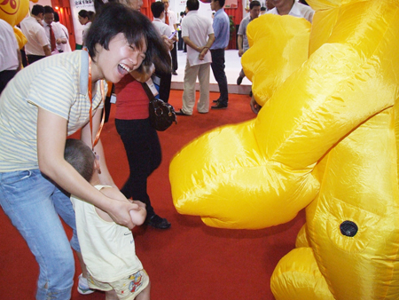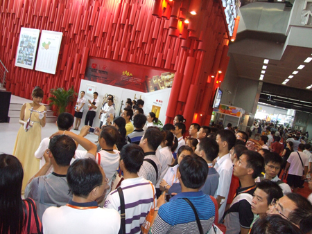 展館外,創意無限的展臺形象,逗留在匯泰龍展臺前的觀眾爭先合影留念,一分鐘快照項目讓觀眾留下了美好的回憶。可愛逗趣的匯泰龍吉祥物——星Q互動,吸引了眾多參觀者的眼球,匯聚了全場最高的人氣,讓匯泰龍展臺一如往年成為展會的人氣中心。