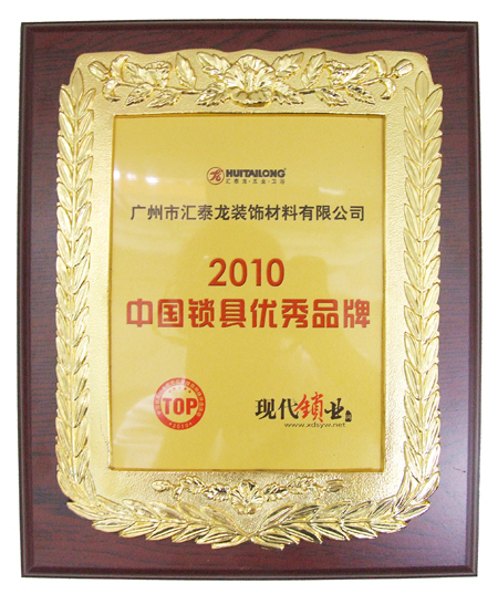 在“中國鎖具行業(yè)優(yōu)秀品牌推薦網(wǎng)絡評選”活動中,匯泰龍榮獲“2010年中國鎖具優(yōu)秀品牌”的稱號,并獲證書。