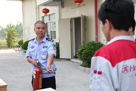 后勤主管正在講解滅火器的使用方法