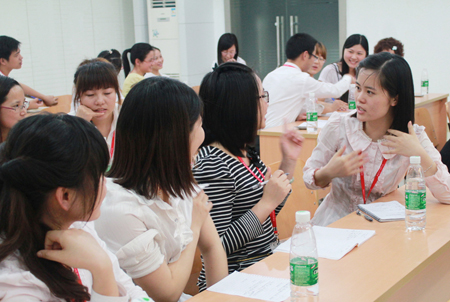 本次培訓課程總共三個小時,分為兩個部分:電話禮儀基礎(chǔ)知識講解和演練。講師首先講解了學習電話禮儀的重要目的、電話禮儀形象塑造、通話注意事項等等。在演練過程中,全體學員分為八個討論小組,每一組學員代表上臺當場表演,由下面的學員通過剛剛學習的禮儀知識對表演者進行點評,整個培訓課程氛圍活躍,互動性強,取得了良好的培訓效果。
