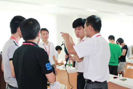 在培訓(xùn)開(kāi)始,供應(yīng)中心總監(jiān)楊軍先生作了開(kāi)學(xué)致辭,他結(jié)合第十四屆建博會(huì)的市場(chǎng)調(diào)查,為在場(chǎng)的學(xué)員分析了當(dāng)今智能電子鎖的市場(chǎng)形勢(shì),提出了系統(tǒng)學(xué)習(xí)智能電子鎖知識(shí)的必要性,并且鼓勵(lì)全體學(xué)員在本期的培訓(xùn)過(guò)程中能學(xué)有所成,為所在地匯泰龍客戶(hù)提供更加專(zhuān)業(yè)的銷(xiāo)售、安裝、售后服務(wù)。匯泰龍電子鎖事業(yè)部全體產(chǎn)品開(kāi)發(fā)人員作為本次培訓(xùn)的講師和助教參加了本次培訓(xùn)。