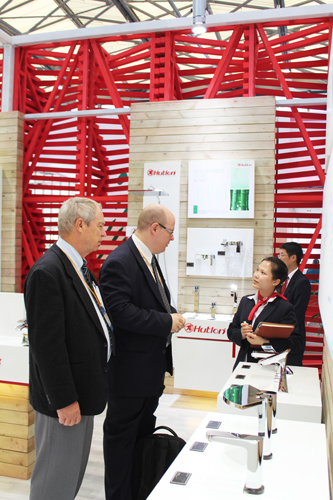 據(jù)匯泰龍營(yíng)銷和品牌負(fù)責(zé)人介紹,本屆廚衛(wèi)展,匯泰龍以高貴典雅、健康時(shí)尚的衛(wèi)浴產(chǎn)品和獨(dú)特的產(chǎn)品展示方式,結(jié)合產(chǎn)品領(lǐng)先的科技性能,傳達(dá)一種為客戶打造宜居生活空間的品牌理念。走進(jìn)匯泰龍展館,一種古樸原色的木紋展示墻給人眼前一亮,仿佛在繁華都市中的一片田園,清新自然。品種豐富的各種衛(wèi)浴產(chǎn)品在綠色竹林的映襯下,更能體現(xiàn)匯泰龍品牌對(duì)于一種宜居生活的追求。前來(lái)體驗(yàn)與品鑒的賓客絡(luò)繹不絕,同時(shí)也吸引了許多國(guó)外客商洽談合作事宜,整個(gè)展廳人氣火爆,洽談區(qū)常常是座無(wú)虛席。前來(lái)參觀的賓客對(duì)匯泰龍的衛(wèi)浴產(chǎn)品品質(zhì)贊口不絕,部分賓客更對(duì)匯泰龍五金衛(wèi)浴品牌產(chǎn)生濃厚的興趣,要求進(jìn)一步洽談與了解,并希望到廣東生產(chǎn)基地參觀。展會(huì)不僅吸引了國(guó)內(nèi)外各路客商紛紛前來(lái)參觀,洽談,同時(shí)也成為各大媒體的關(guān)注的焦點(diǎn),新浪家居、搜狐家居、太平洋家居等網(wǎng)站分別對(duì)董事長(zhǎng)陳鴻填先生、總經(jīng)理徐振忠先生、品牌推廣部負(fù)責(zé)人進(jìn)行了專訪。