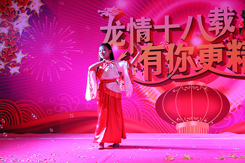 整場晚會節(jié)目豐富多彩,包含:歌唱類、小品類、舞蹈類、戲劇類、紀錄片播放、公司宣傳片播放、賀歲VCR《逐夢》播放,市場一部的趙旭煌的硬氣功表演、人事行政部的《開會》、市場一部的陳文珊《爵士舞》、特約小嘉賓楊陽的《玩轉悠悠球》等節(jié)目得到了現(xiàn)場觀眾的陣陣喝彩。