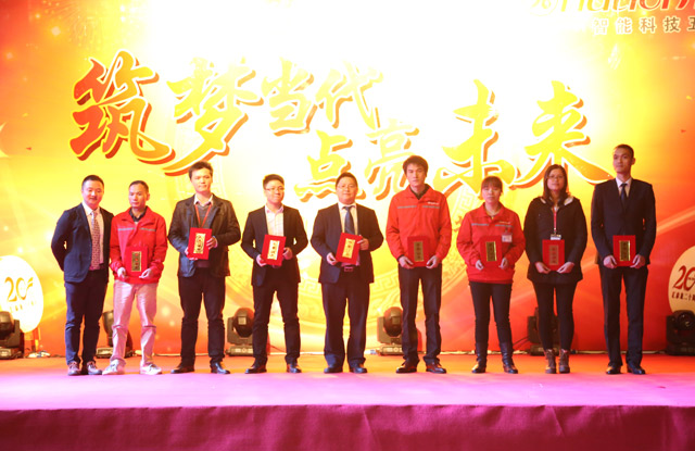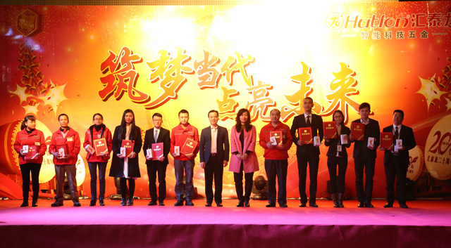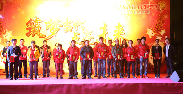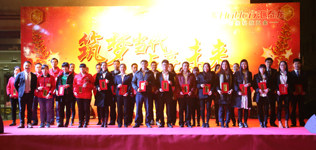 紀錄片VCR《逐夢路上你我同行》播放后,匯泰龍公司徐總為工作業(yè)績和工作表現(xiàn)突出的“效益標桿”和“優(yōu)秀員工”頒發(fā)了榮譽證書。