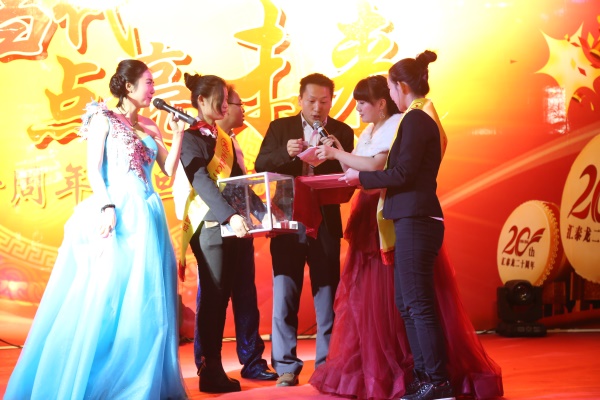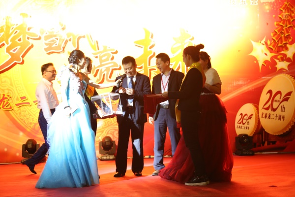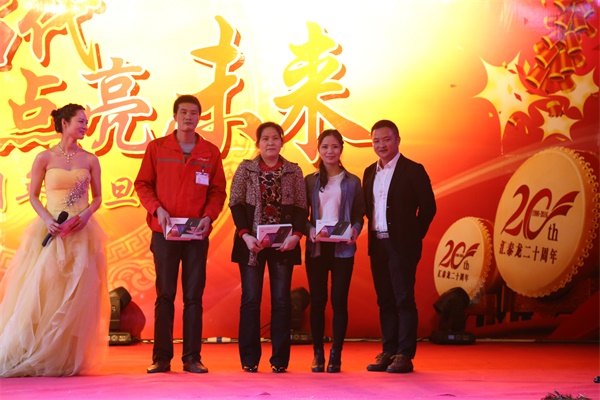為慶祝公司二十周年,本次晚會首次評出12名“感動匯泰龍人物”,匯泰龍公司陳董、陳太為獲獎員工頒發(fā)榮譽證書和獎品“64G香檳金Iphone6S”。
