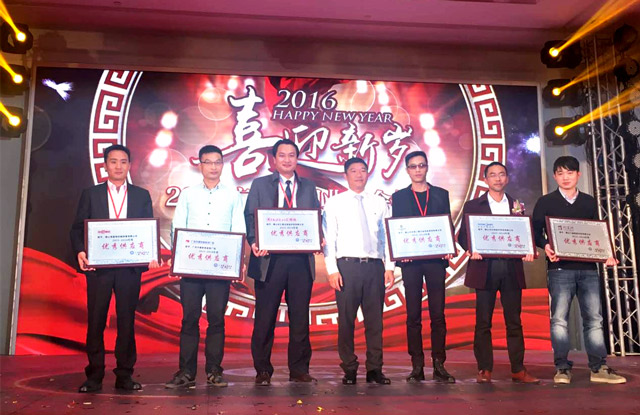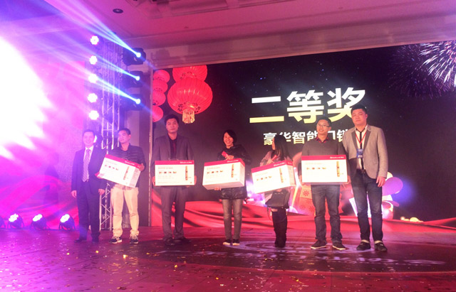 在接下來的優(yōu)質供應商頒獎儀式上,憑借優(yōu)秀的產品品質和極高的市場美譽度,匯泰龍榮獲廣東省門業(yè)《優(yōu)秀配材與機械》、《優(yōu)秀供應商》光榮稱號。晚宴開始后,伴隨著精彩節(jié)目的推進,當晚進行了激動人心的抽獎環(huán)節(jié),禮品種類豐富,匯泰龍公司贊助的精美豪華智能鎖獎品,給獲獎嘉賓帶去了時尚、高端、智能的科技體驗。
