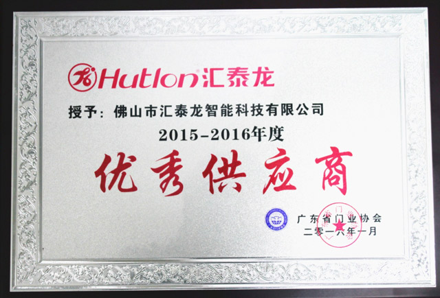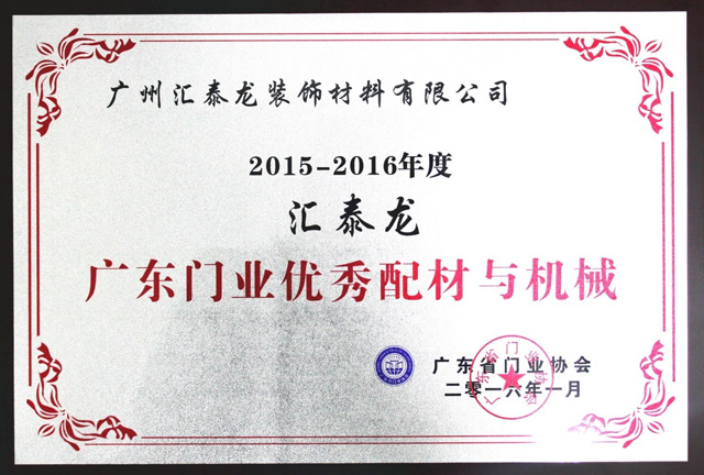 《廣東省門業(yè)優(yōu)秀配材與機械》、《優(yōu)秀供應商》牌匾