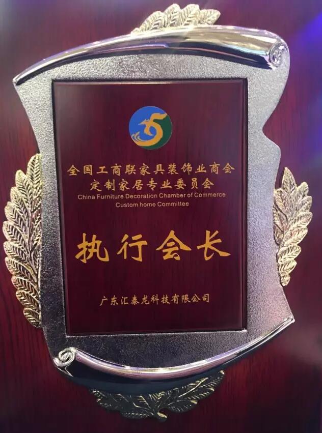 ▲匯泰龍當選“全國工商聯家具裝飾商會定制家居專委會執行會長”單位