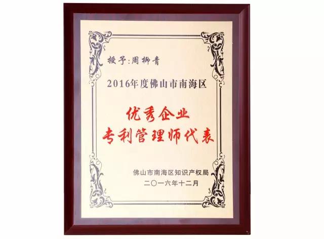 匯泰龍總經辦主任周柳青女士榮膺“2016年度佛山市南海區優秀企業專利管理師代表”
