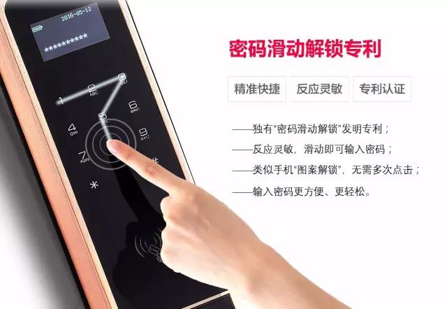 “密碼滑動解鎖”發明專利,反應靈敏,滑動即可輸入密碼,輸入密碼更方便、更輕松。