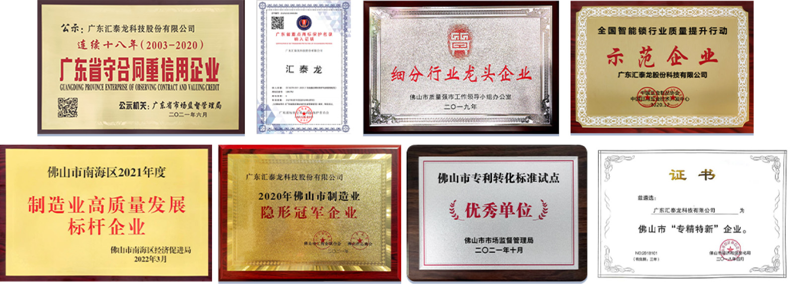 匯泰龍26年潛心耕耘,關注細節,堅持專業,獲得諸多行業贊譽,榮膺:“細分龍頭企業”、“連續十八年廣東省守合同重信用企業”、