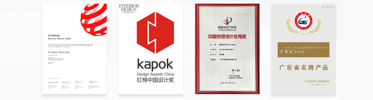 ”廣東省名牌產品“ ”十大智能鎖品牌“、”十大優選家居五金品牌“