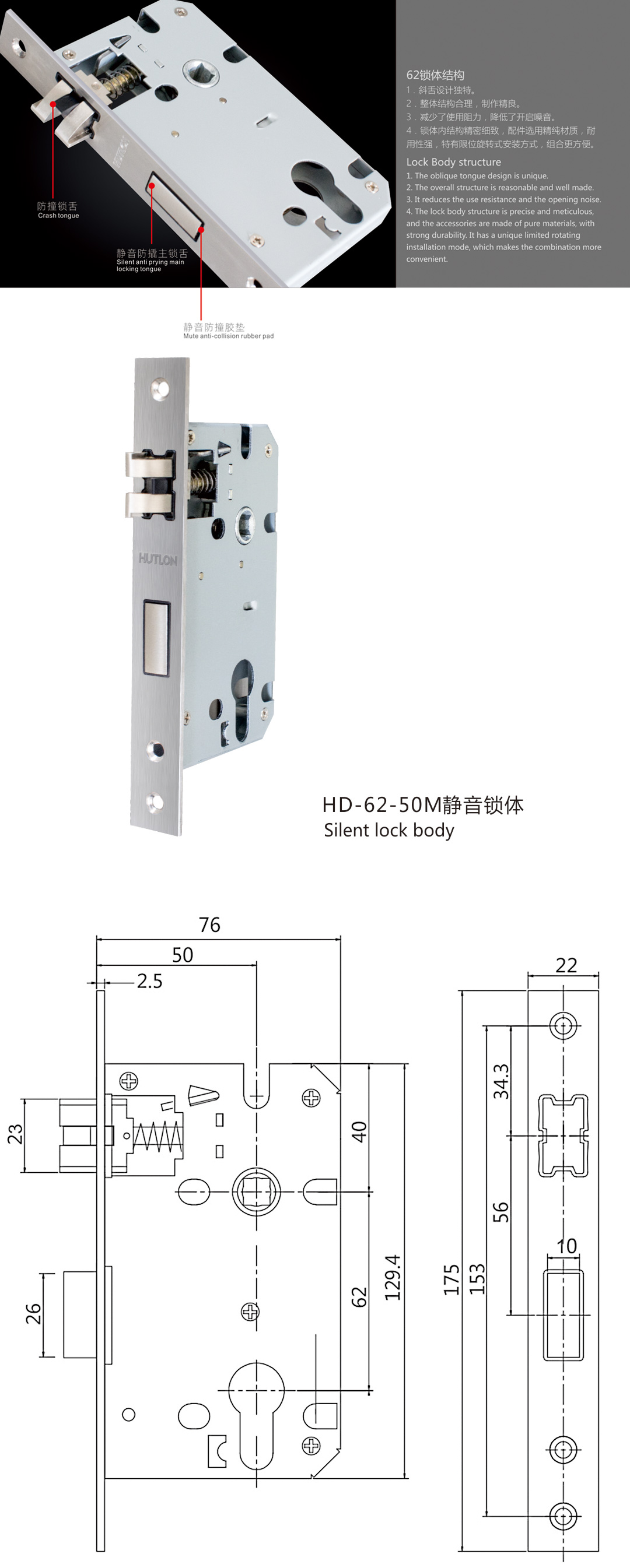 HD-62-50M 靜音鎖體