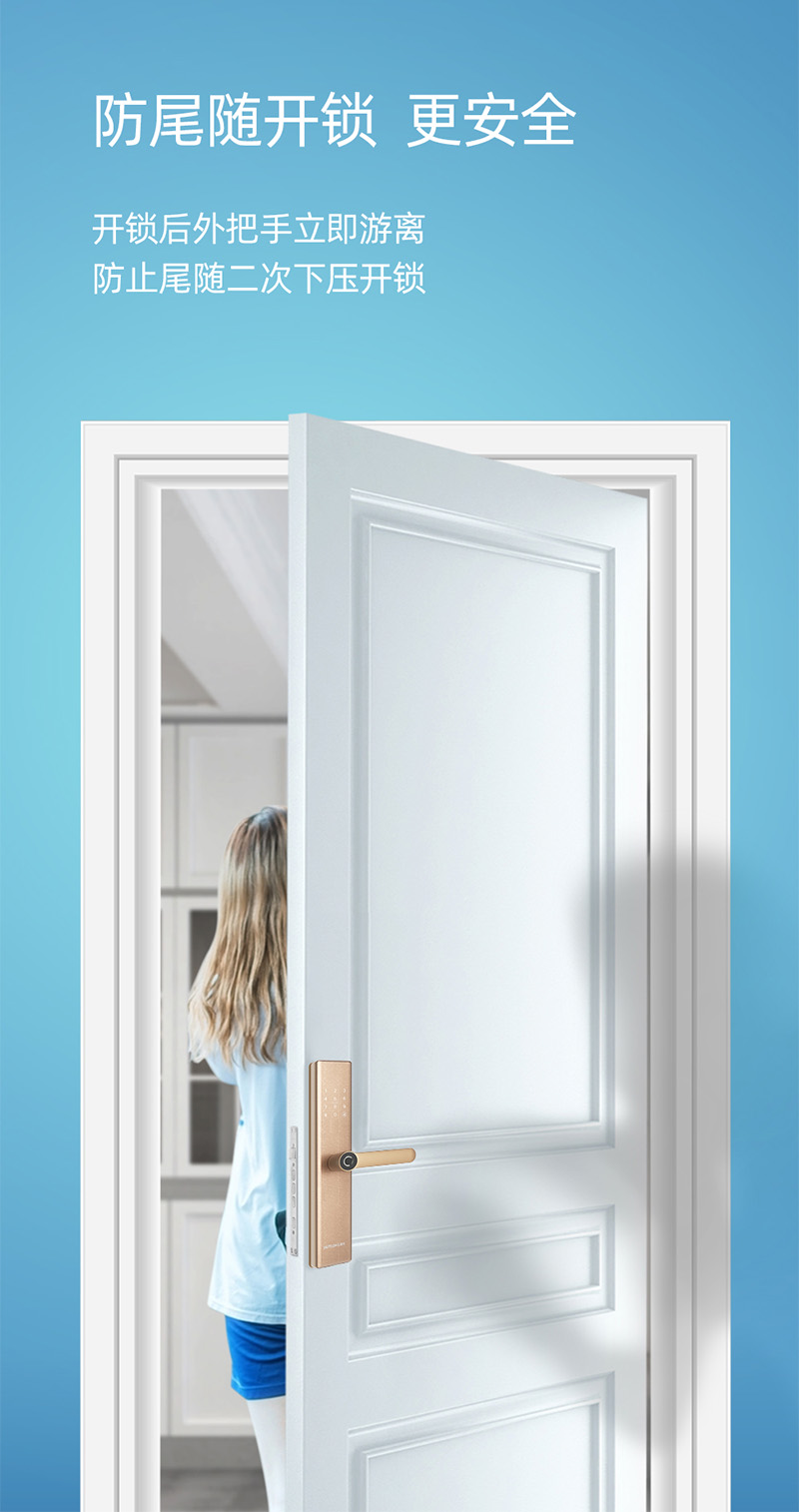 支持指紋、密碼、感應卡、機械鑰匙四合一開鎖方式;