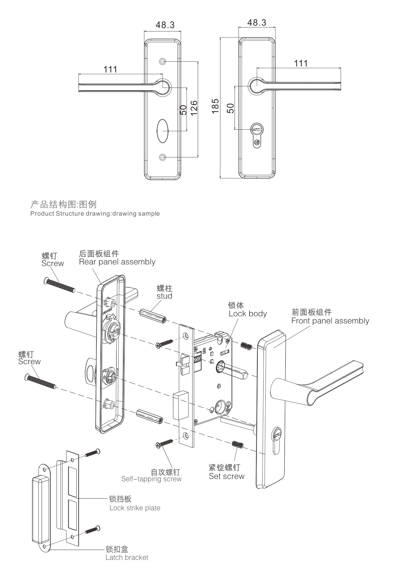 6擰緊螺釘,安裝扣板及扣盒,對齊鎖體,應使鎖舌與之配合順暢,擰緊螺釘(如上圖:H)。