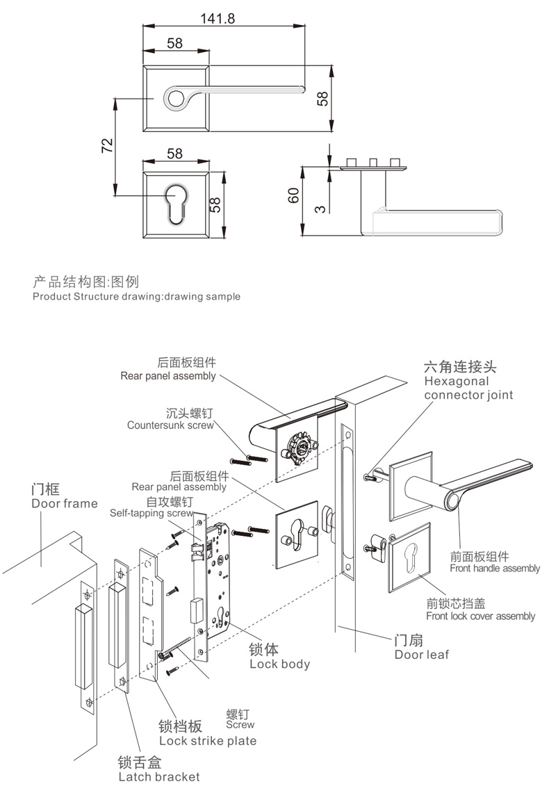 4安裝內(nèi)外面板,使把手轉(zhuǎn)動(dòng)順:擰緊螺釘(如上圖:E-F)。