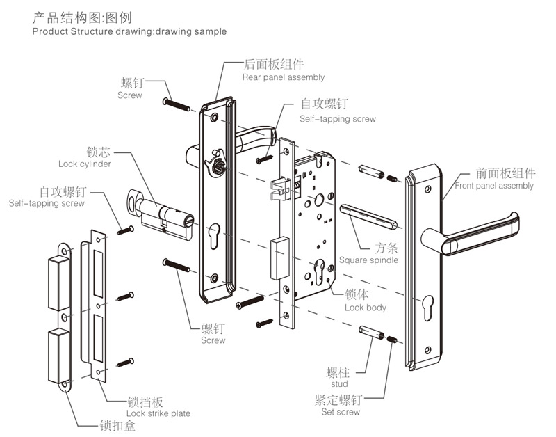 6擰緊螺釘,安裝扣板及扣盒,對齊鎖體,應(yīng)使鎖舌與之配合順暢,擰緊螺釘(如上圖:H)。