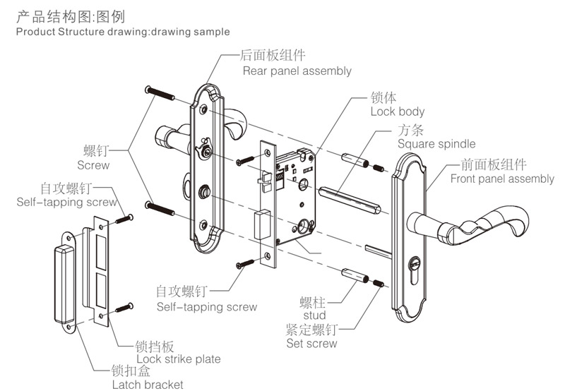 6擰緊螺釘,安裝扣板及扣盒,對齊鎖體,應使鎖舌與之配合順暢,擰緊螺釘(如上圖:H)。