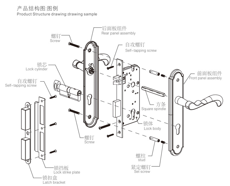 6擰緊螺釘,安裝扣板及扣盒,對齊鎖體,應使鎖舌與之配合順暢,擰緊螺釘(如上圖:H)。