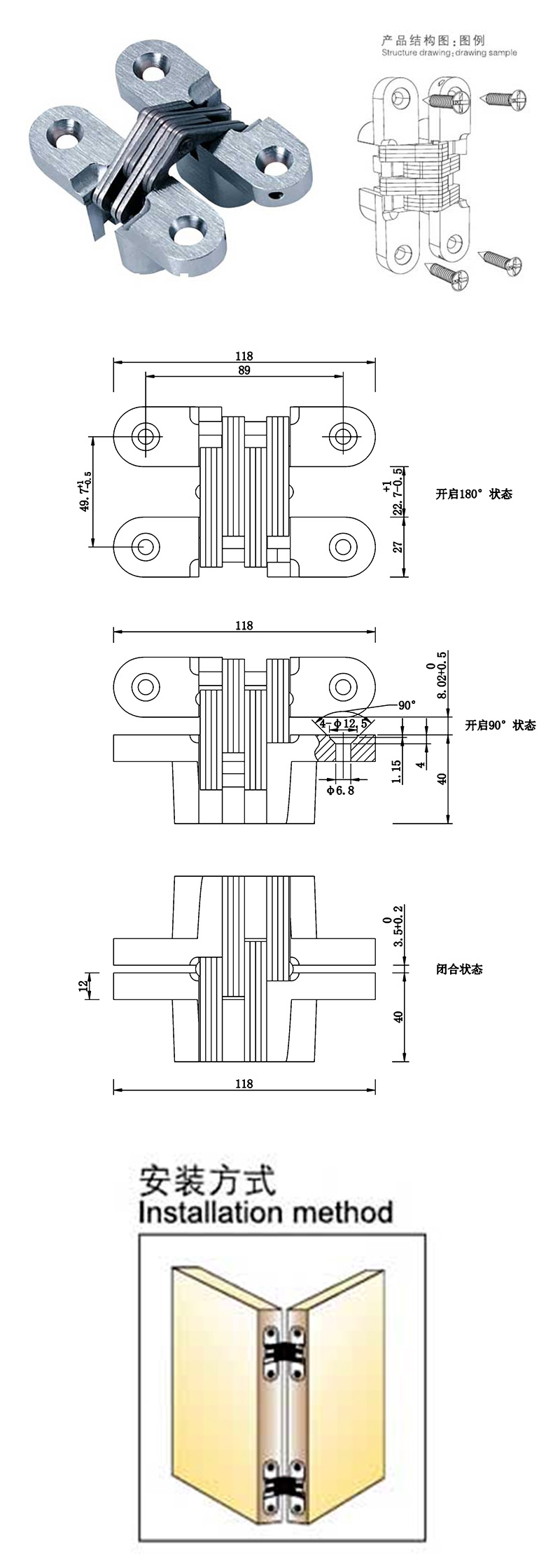 2.門扇與門框按圖示尺寸開孔;
